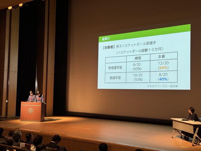 2年1組 片山さん・原口さん(スポーツ健康科学分野)、2年2組 三森さん(人文科学分野)