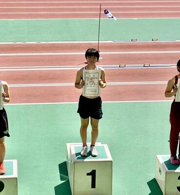 私は今回初めて自分の専門種目である走り幅跳びで南九州大会に出場しました。去年の九州新人戦で出場した際は周りの雰囲気にのまれたり緊張したりして納得のいく跳躍が出来ず終わってしまったんですが、今回は周りにのまれることなく苦手な天気の中で自己べストを出すことが出来て良かったです。しかし、今の記録のままでは入賞も出来ないしもっと上の大会では厳しいのでこれから自分に足りないスプリントや技術を上げていくために練習わどうやるか、いつやるかなど考えて行なっていきたいです。また今回インハイを決めた二人の先輩の競技を見てインハイにいくという目標への思いが強くなりました。今回はいけなかったんですが、来年こそインターハイに必ず行けるようまずは練習そして普段の生活で改善すべき部分を変えて頑張ります。そしてこうやって活躍できるのは先生のご指導や保護者の方々、仲間、OGOBの方々の応援のおかげです。それに応えれるようこれからも頑張ります。応援・サポートありがとうございました。