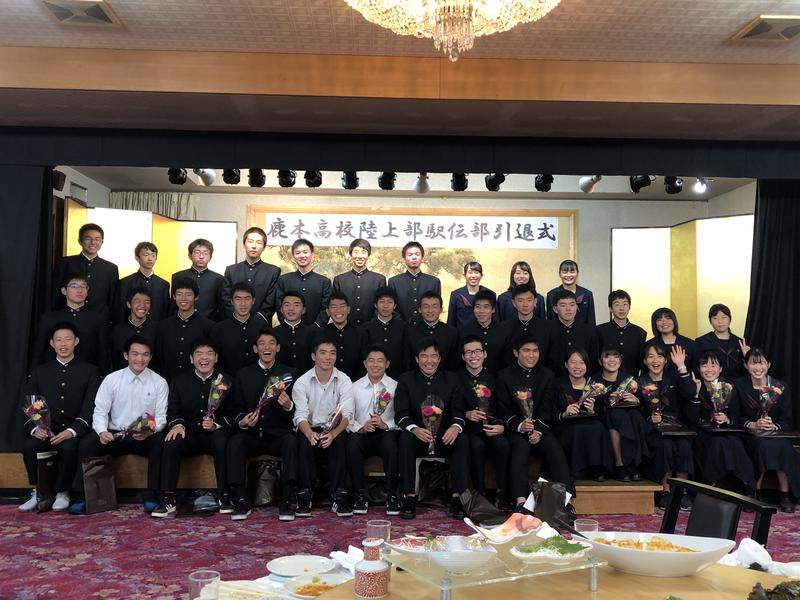 写真は決勝のアンカーで1位の国府高校と2位の九州学院を鹿本高校が3番手で追っているところ。