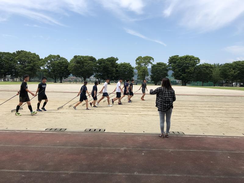 日々の練習で活用しているタータントラックの清掃を時間を見つけては行っています。綺麗になった所を使ってみた生徒は「気持ちいいですね」「走りやすいです」「これからこまめにやって行きたいです」など、自分達で清掃を行うことで道具や設備に感謝の気持ちが生まれてくるようです。いかに、恵まれた環境で練習できているのかを清掃を通して気づいていってくれればと思います。