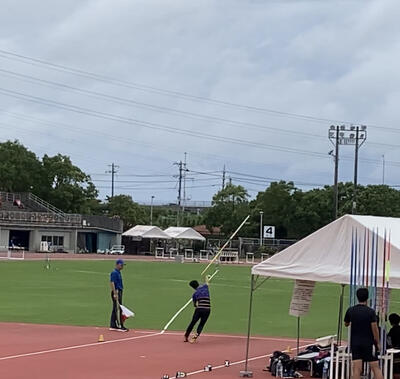 2日目まで試合が終わり、男子棒高跳で3年の出崎くんが2位でインナーハイの出場権を獲得しました。自己ベストを更新し4m40cmを跳び1位と同じ高さを飛んでいましたが、試技数で2位となりましたがまだまだ可能性を感じさせる跳びだったように思えます。