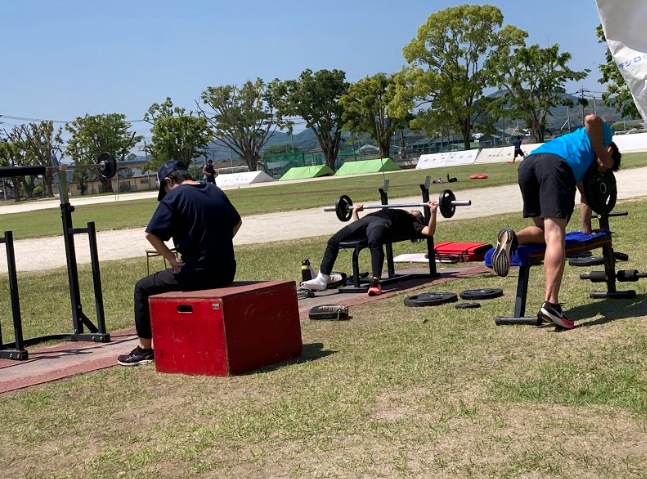 また、怪我をした生徒もまとまり、自分たちのできるトレーニングを行っています。