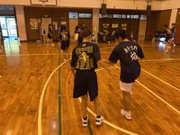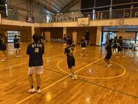 今日は玉名中と練習試合を行いました。試合前のウォーミングアップにリズムトレーニングを取り入れて一緒に行いました。先月、鹿屋体育大学のサマーキャンプで学んだ内容を中学生に教えながらやってみました。スポーツ健康科学コースの部員がリーダー役、他の部員がデモンストレーション役になり一緒に汗を流しました。教えることで学んだことを振り返りながら新たに気づくこともあり、短い時間でしたがとても良い勉強になりました。 練習試合は8分ゲームを6本ほど行いました。鹿本高校はオールコートのプレスディフェンスで対応しました。中学生の得点にはなかなか結びつかない場面が多かったですが、試合を重ねるごとにフロントコートにボールが進むようになり、中学生の頑張りが光る試合でした。