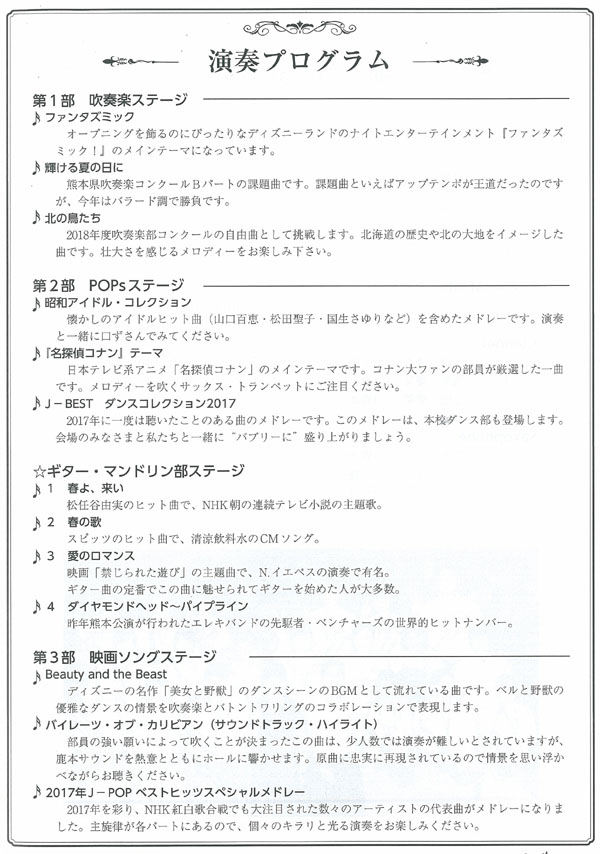 第45回吹奏楽部定期演奏会 投稿日時 : 2018/03/29 学校サイト管理者 今年度の定期演奏会を開催しました。 協力していただいた方々に感謝を込めて演奏しました。 当時の様子は「行事等の記録」の「3月 第45回吹奏楽定期演奏会(1)、(2)」を御覧ください。 {{options.likeCount}} {{options.likeCount}}