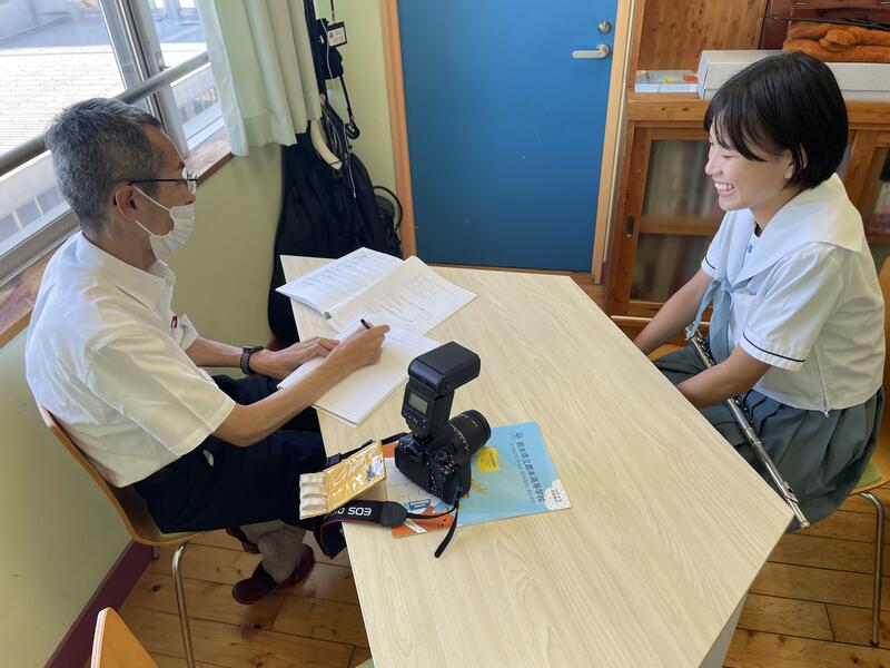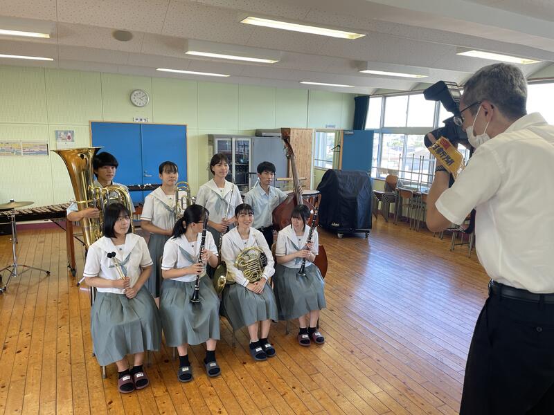 先日の熊本県吹奏楽コンクール代表選考会の本校の演奏を聴いて興味を持ってもらい、今回の取材に繋がりました。