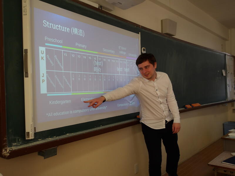 まず、イギリスの教育制度についてALTのLiam先生から説明。