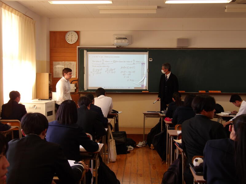 英語で解説を聞いた後、数学の先生が理解の確認を行いました。