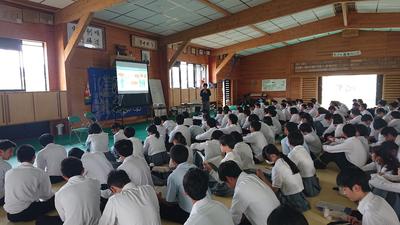 総合的な探究の時間で山鹿の魅力 発見・発信プロジェクトを実施しています。この活動の中で、どのようにプレゼンをすると伝えたい人にうまく伝えられるのか。プレゼンを行うにあたり何を意識すると良いのかを外部講師の三次さんから学びました。特に今回はパワーポイントとポスターを作成する場合で講話をしていただきました。