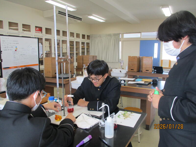科学分野の生徒が、論文作成と並行して最後の実験を行い、最終確認をしていました。