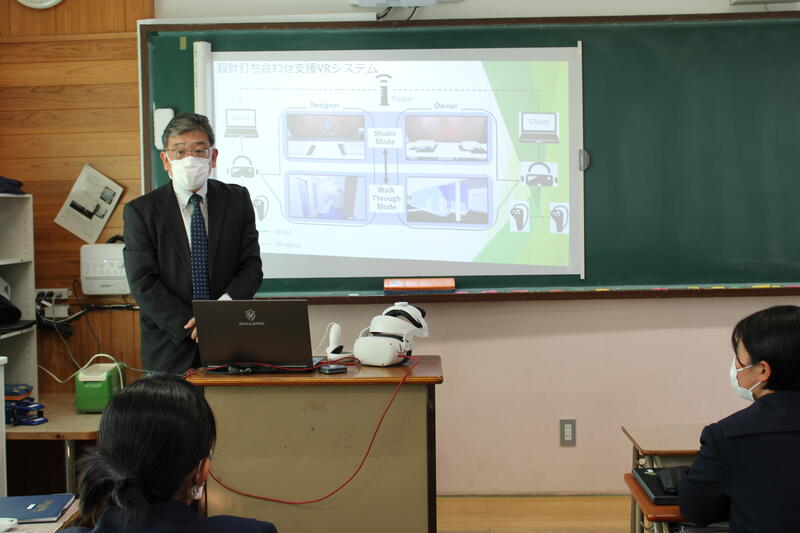講義の中で、プログラミングの考え方やコーディングのポイントを解説していただき、「数学や物理などの知識が合体し、プログラミングに活かされる。授業で学んでいる様々なことを大事にしてほしい。」とお話をいただきました。