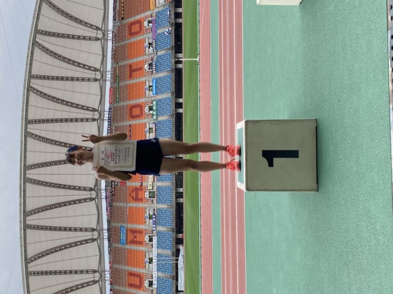女子走幅跳では3年の豊後さんが1本目から5m 58cmの好記録をマークし、そのまま優勝しました。この勢いで2日目以降も頑張っていきたいと思います。