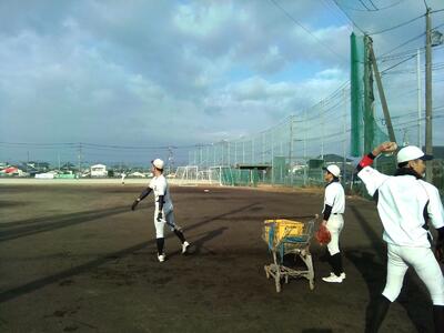 野球部の冬の練習風景です。通常のノックやバッティングの練習も行いますが、主に体力アップ、筋力アップを目的とした練習を行います。筋力トレーニングのための機器も学校にはそろっております。