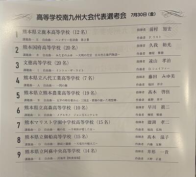 7月30日(金)、熊本県立劇場コンサートホールにて開催された第17回南九州小編成吹奏楽コンテスト熊本支部予選 高等学校代表選考会に出場しました。