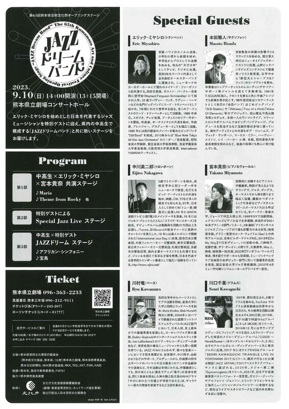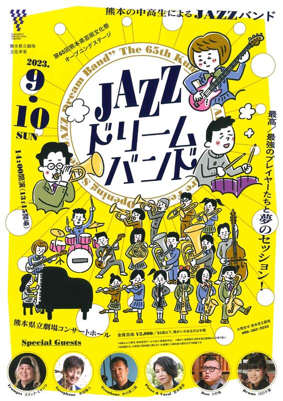 9月10日(日)に開催される熊本県芸術文化祭オープニングステージ「JAZZドリームバンド」に本校吹奏楽部員から1名参加します。
