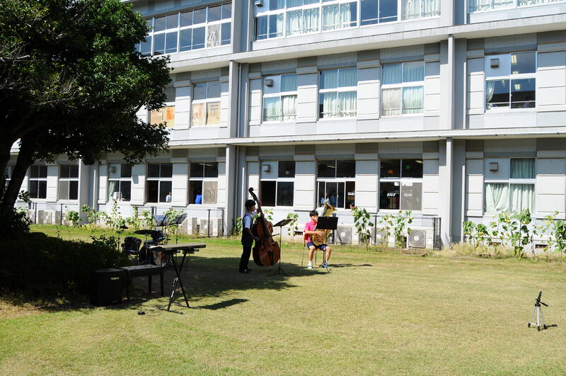 天気にも恵まれ、中庭のシンボル的存在の木の下で、とても楽しい充実した演奏経験となりました!