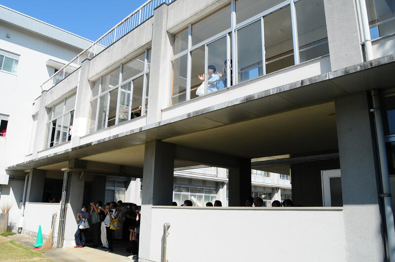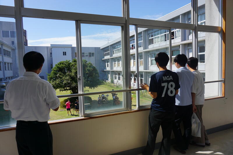 本校の中庭は校舎と廊下に囲まれており、様々な方向から見ていただくことができました。