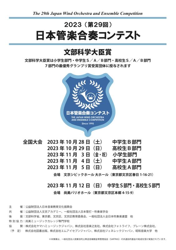 本校吹奏楽部が出場する『第29回(2023年)日本管楽合奏コンテスト 全国大会』。
