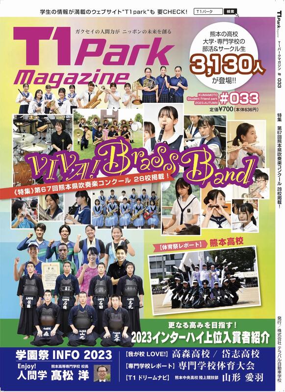 11月1日(水)発売のT1パークマガジン#33は県内の吹奏楽部の特集となっています。