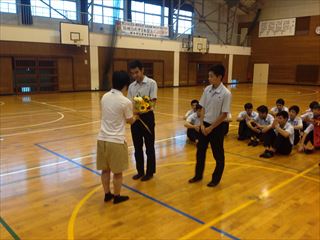 6月11日から教育実習を行っていた鹿南中出身の伊藤先輩の教育自習が終了しました。先輩は鹿本高校の卒業ではありませんが縁あって実習を行いました。今日は最終日でしたが台風の影響で部活動も中止となり、最後の練習も一緒にできませんでしたが、4週間、ファンダメンタルをしっかりと教えていただきました。教育実習直前にも西日本大会に出場され、現役で活躍されているプレーヤーに大きな刺激を与えていただきました。今後、インカレで優勝することと学校の先生になることを目指しているということです。私たちも先輩のように大きな目標を掲げて日々努力していきたいと思いました。