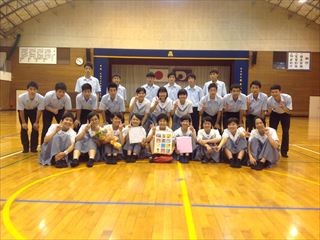 山鹿市唯一の男子バスケット部ではありますが、毎日熱心に練習に励み力を付けています。試合は本番を想定し正式なゲームを1ゲーム行いました。県大会では山鹿市の代表として頑張って欲しいと思います。鹿本高校のバスケット部にも山鹿中学校出身の部員がいますが、中学校ではバスケット部以外だった先輩も多く、本校バスケット部の部旗に掲げている「挑」の文字の通り、新たな競技へ挑戦している先輩が多くを占めています。
