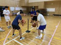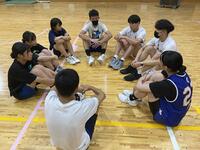 鹿屋体育大学サマーキャンプに参加しました。鹿本高校男子としては初めて参加させていただきましたが、広大な敷地にサッカー場、野球場、ラグビー場、ゴルフ場などの施設とともにバスケットコート2面がとれる主体育館の他に隔週体育館があり、規模の大きさに圧倒されました。初日は14:30から60名近い受講生が9グループに分かれ、自己紹介などコミュニケーションスキルのトレーニングから始めました。