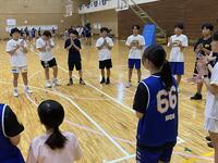 今日はサマーキャンプの最終日です。初めての参加で緊張もありましたが、大学生の先輩方が練習中も大きな声で盛り上げてくれたので、疲れも溜まってきましたがきつさも忘れて練習することができ、とても楽しく感じました。午後からはグループごとにゲームを行いましたが、シュートを落として大きな声で盛り上げたり励ましたりしていただき、バスケットや練習の楽しさを改めて感じることができました。最後は参加者全員で記念撮影をして終わりました。是非、来年も参加したいと思います。