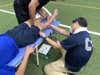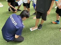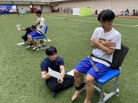 今日はスキルトレーニングを中心に指導を受けました。受講者をレベルに応じて3グループに分け、レベルに応じたメニューを学生の皆さんに指導していただきました。このサマーキャンプは大学3年生の指導実習の授業を兼ねた講習会となっています。これまでの自分の経験と専門的に学んだ知識等をわかりやすく丁寧に教えていただき、時間がたつのも早く感じました。