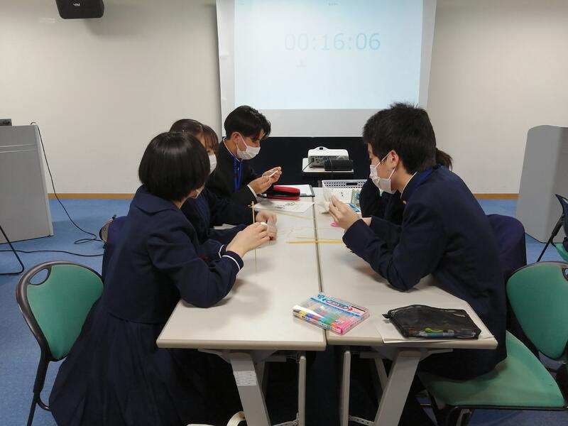 アイスブレイクでは「マシュマロタワー」を製作し、高さを競いました。