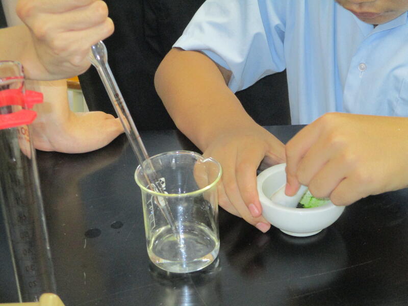 ホウレン草をすりつぶし、メタノールに色素を溶かし出しました。