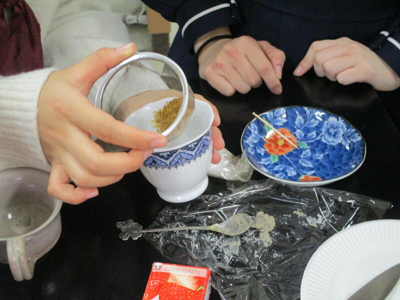 2年生は3年生の研究を引き継ぎ、ブドウの搾りかすで歯磨き粉を作っています。