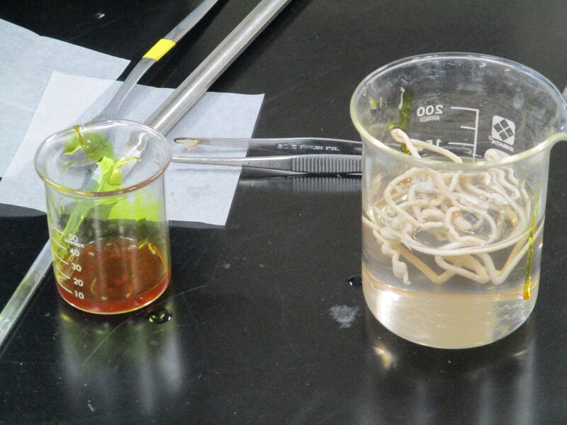2日間ほどイガと薬品を反応させた反応液を用いて、最後の処理を行います。