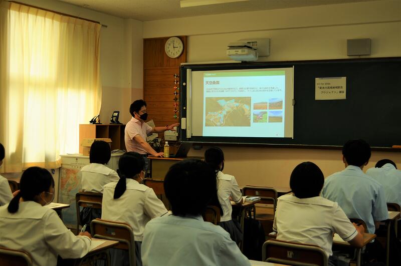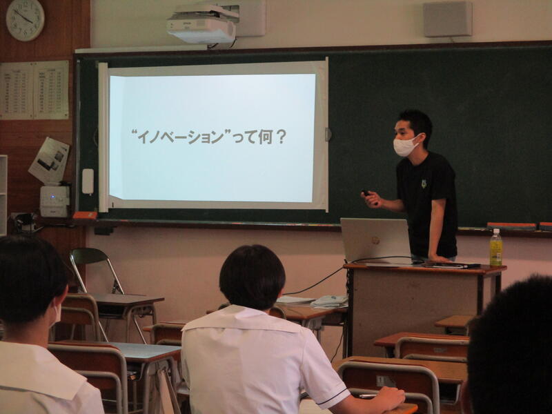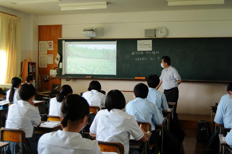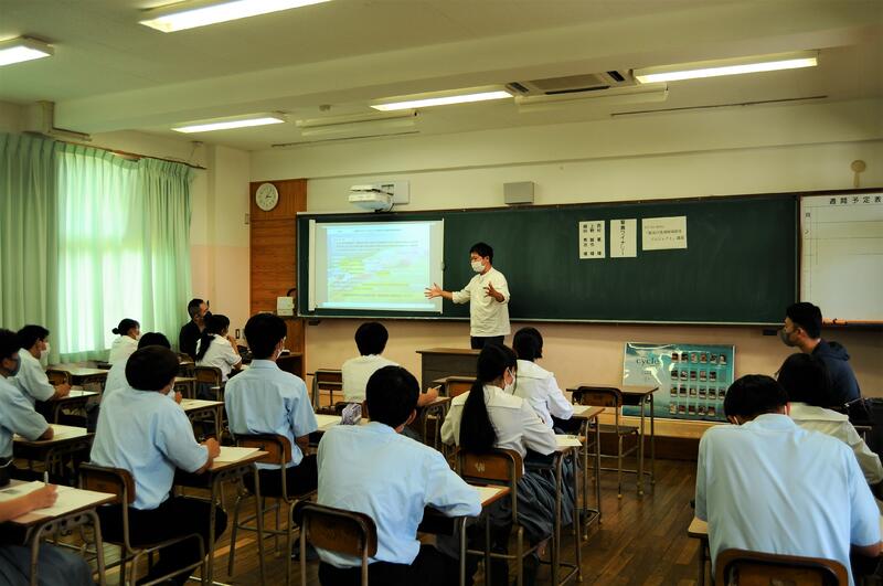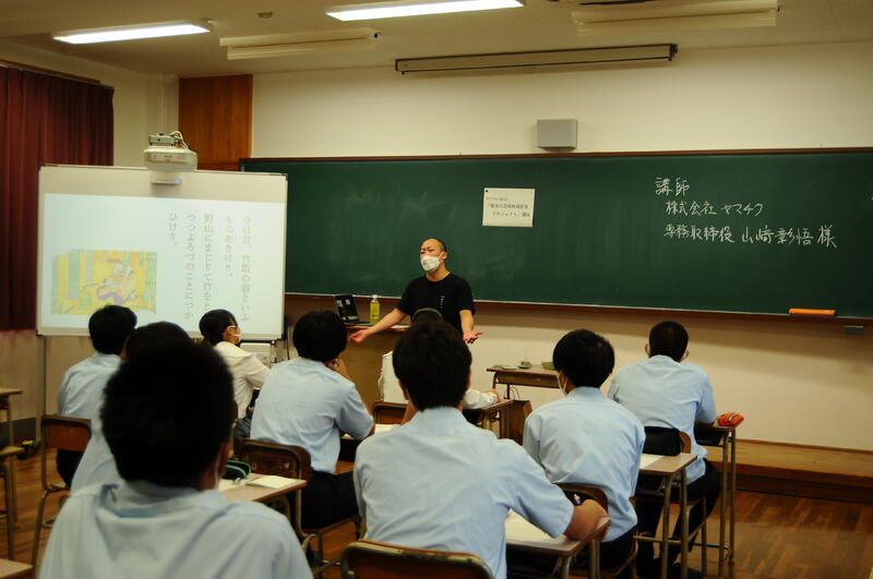 6月16日(木)、課題研究に取り組んでいる1年生を対象に、地元企業から講師を招いてご講話をいただきました。