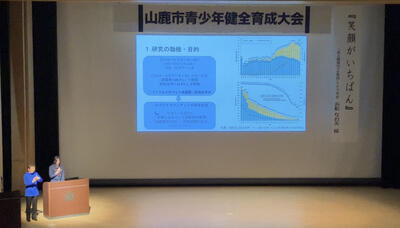2月11日(土)に山鹿市民交流センターで行われました。本大会は「地域で子どもを守り育てる」という目的で開催されており、青少年の非行防止や家庭や地域社会の教育力向上に向けた大会決議や講演、各学校の実践発表が行われました。
