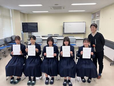 2月15日(水)山鹿市社会福祉協議会が主催されたボランティア講座に参加し、保育園等でのボランティア活動に従事した5名の生徒に修了証が授与されました。