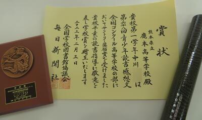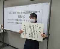 読書感想文コンクール熊本県審査において最優秀賞を受賞した本校生の作品が、