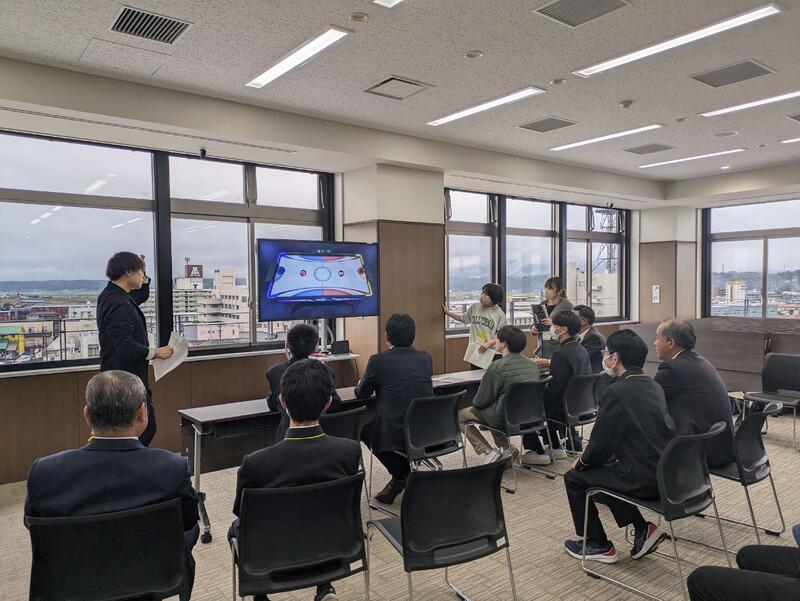 若者の政治離れを防ぐために、山鹿市内の中・高校生が市議会議員の方々と交流を深めました。市議会議員の方と生徒がペアになってeスポーツに取り組み、その後の座談会では、若者の政治離れの原因や解決策について話し合いました。