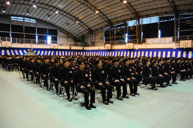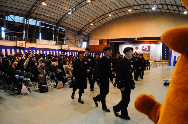また、今回の卒業式を開催するにあたり、1,2年生による、心のこもった教室や会場の飾りつけ、また、朝早くから少しでもいい式にしようと、椅子の並びの調整や待ち時間視聴用の動画準備など、本当に多くの先生方や後輩たちの支えがありました。係の仕事を越え、生徒たちが自主的に動き、それを教師がサポートすることで、より高いレベルへと達するという、現在の鹿本高校の姿を体現する、すばらしい卒業式となりました。卒業生および保護者のみなさま、本当にご卒業おめでとうございます。