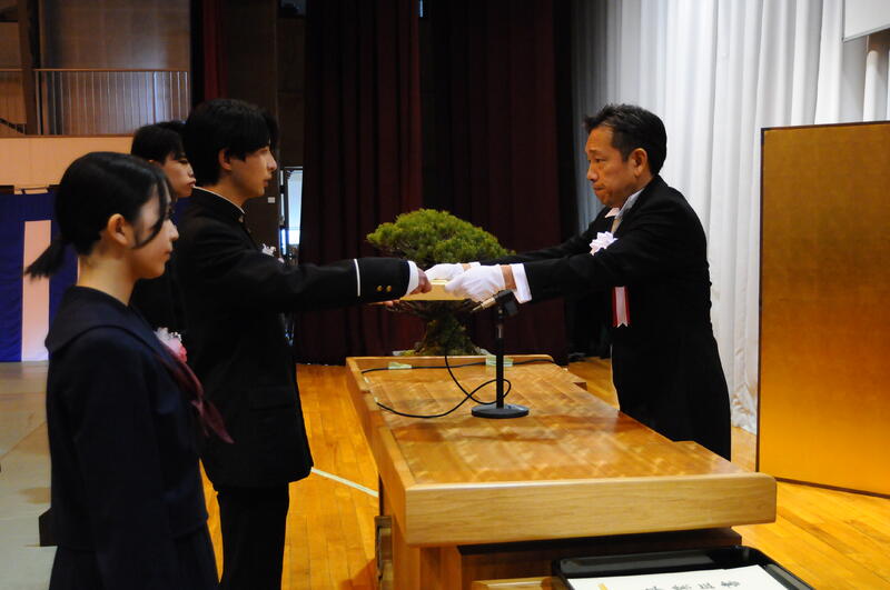 式の前には今年度の表彰式が行われ、多くの生徒たちの頑張りを全校生徒で祝うことが出来ました。