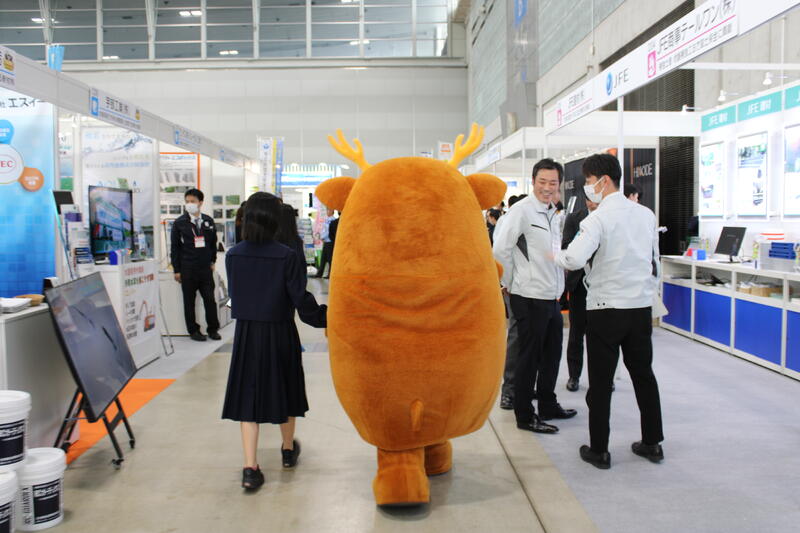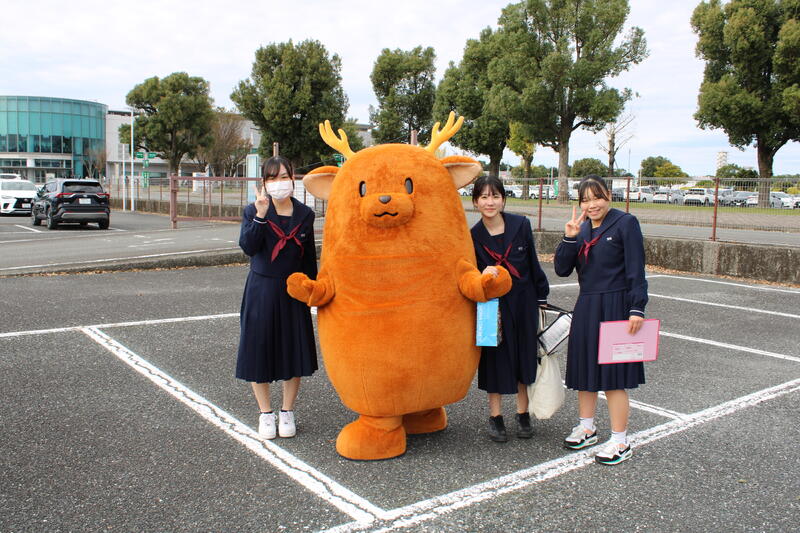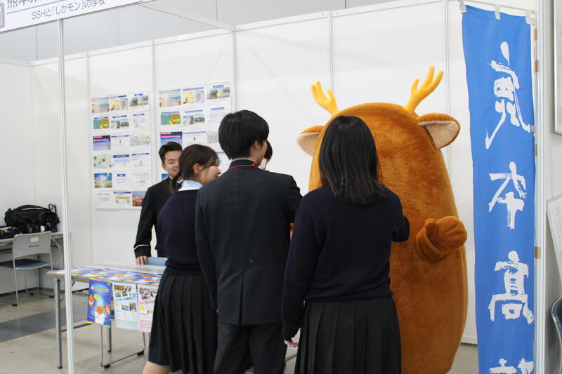 最後に、本校のマスコットキャラクター「しかモン」がこのフェアに参加し、他校の高校生たちや一般の参加者の方々と触れ合い、「かわいい」「写真を撮って」と大人気となり、本校の知名度アップに貢献していました。