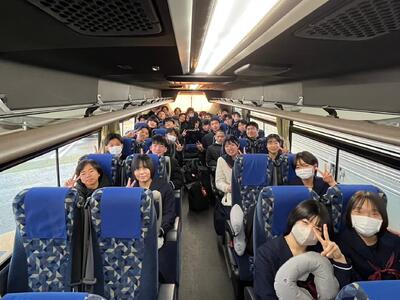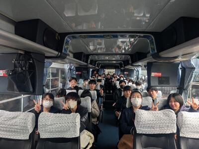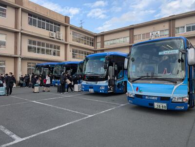 高速道路での事故渋滞によって、予定より1時間半遅れの到着となりましたが、無事全員で学校まで到着しました。