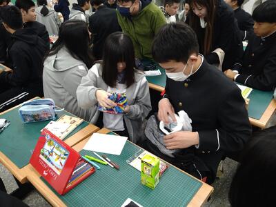 そちらのイベントにて飾られる傘の制作を、進路決定した3年生が取り組んでいます。