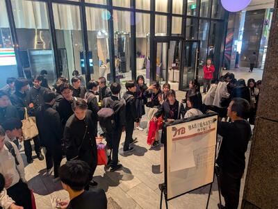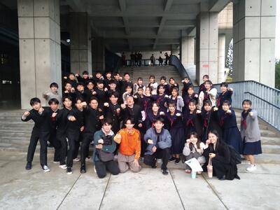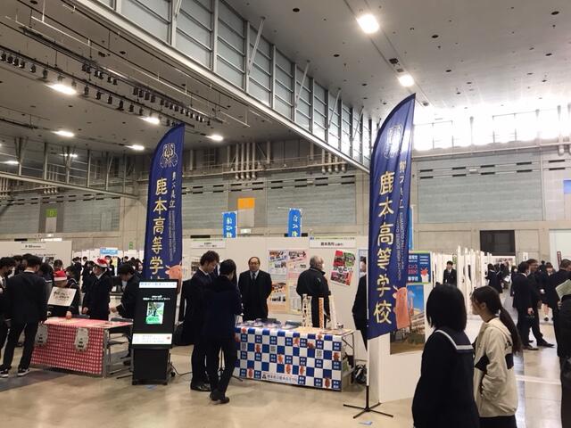 本校の学校紹介ブースでは、新調されたのぼり旗のもと、SSHの授業であるSTEAMで取り組んだタワーや学科紹介ポスター、新制服お披露目、サイネージでの学校動画紹介などを行い、訪れた人に鹿本高校をアピールしました。