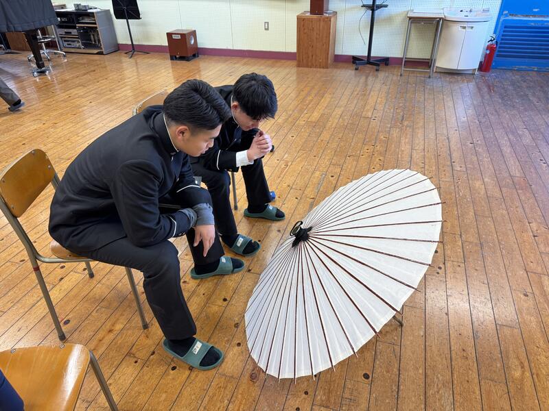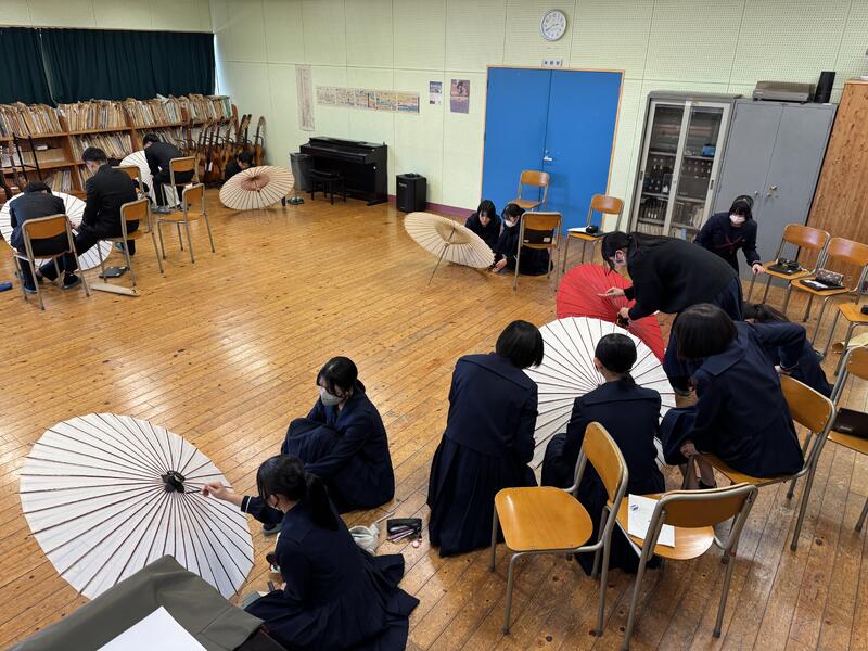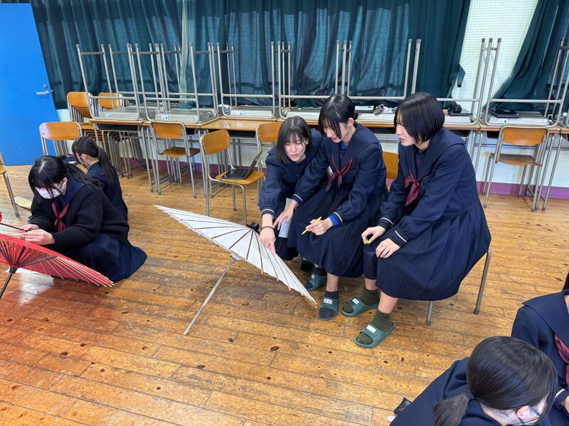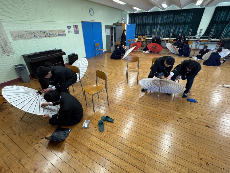 【3学年】山鹿灯籠浪漫・百華百彩に向けて傘の制作に取り掛かっています!