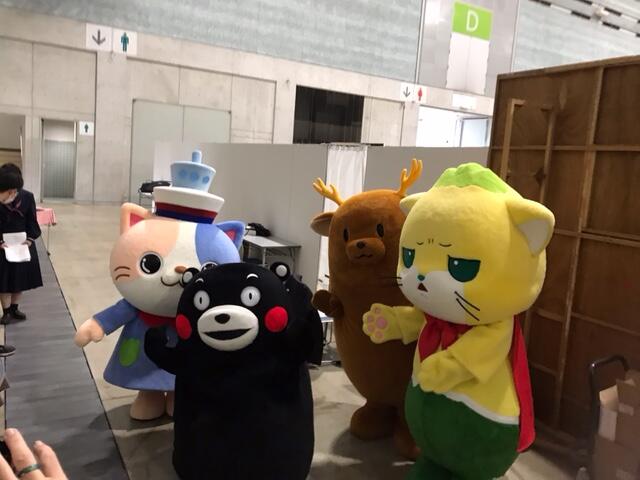 最後にしかモンですが、本校の宣伝部長として、そのかわいさを振りまき、鹿本高校のPRに一役も二役も買ってくれました。またステージ企画では、阿蘇中央高校の「あそにゃん」、御船高校の「ミフネコ」、そして熊本県PRキャラクター「くまモン」とのコラボを果たし、イベントを盛り上げてくれました。
