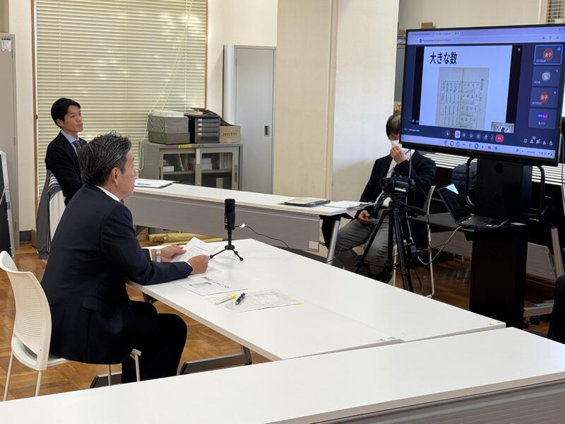 実際に『塵劫記』に記載のある「油分け算」を使って生徒と問題を解き、更に問題を作ってみたりと、楽しみながら協同的に考える式辞でした。