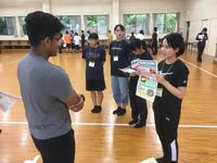 グローバル探究コース1年生のイングリッシュキャンプが7月10日(水)福岡県宗像市のグローバルアリーナにて始まりました。午前10:00に会場に到着、お世話になる九州大学と立命館アジア太平洋大学の留学生の皆さんに迎えられ、開会式が行われ、プログラムがスタートしました。