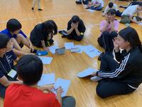 「スカベンジャーハント」はグループごとに、外に出て、英語で書かれたクイズの答えを探す活動。封筒に入れて隠されたアルファベットを探し、時間内に一つのワードを完成させます。幸運にも天候に恵まれ、外での活動が可能となりました。班での協力体制が問われる活動に、生徒は積極的に取り組んでいました。グローバルアリーナ全体にアルファベットが隠されていたため、走りまわりながら、できるだけ多くのヒントを探していました。中にはヒントとなるアルファベットを全部ゲットし、答えを考える姿がとても印象的でした。終わった後生徒たちの表情は達成感と自信でいっぱいでした。隠されていたヒントの答えは「CHALLENGE」。留学生リーダーから生徒たちへのメッセージにも感じられました。