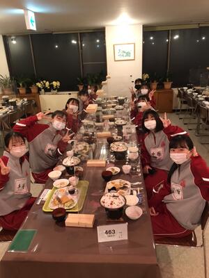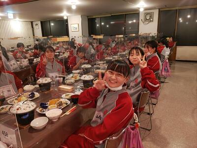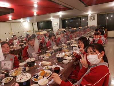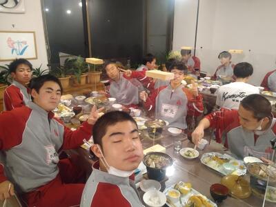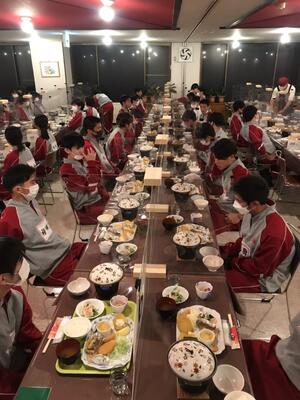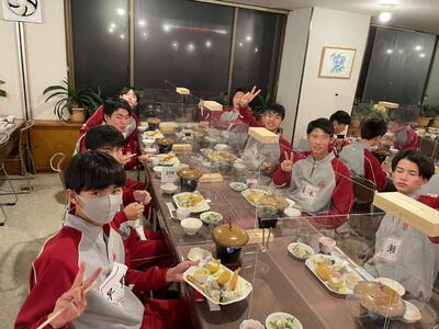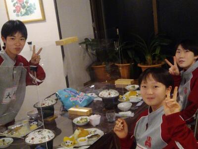 夕食をみんなで楽しく、そしていっぱい食べました!!男子は5杯食べた人も!!!