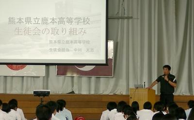 | 鹿本高校の生徒会活動の現状と課題について説明する中川太志教諭 |