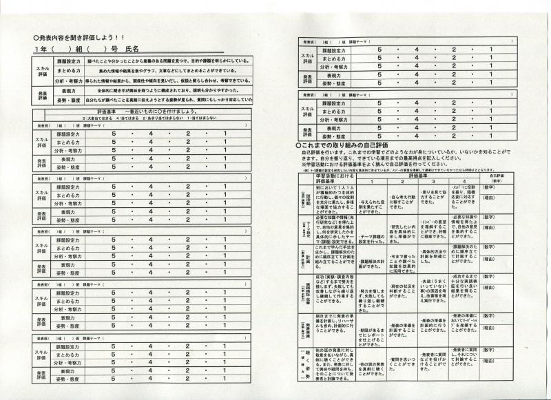 ◎各班の発表評価と自己評価シート